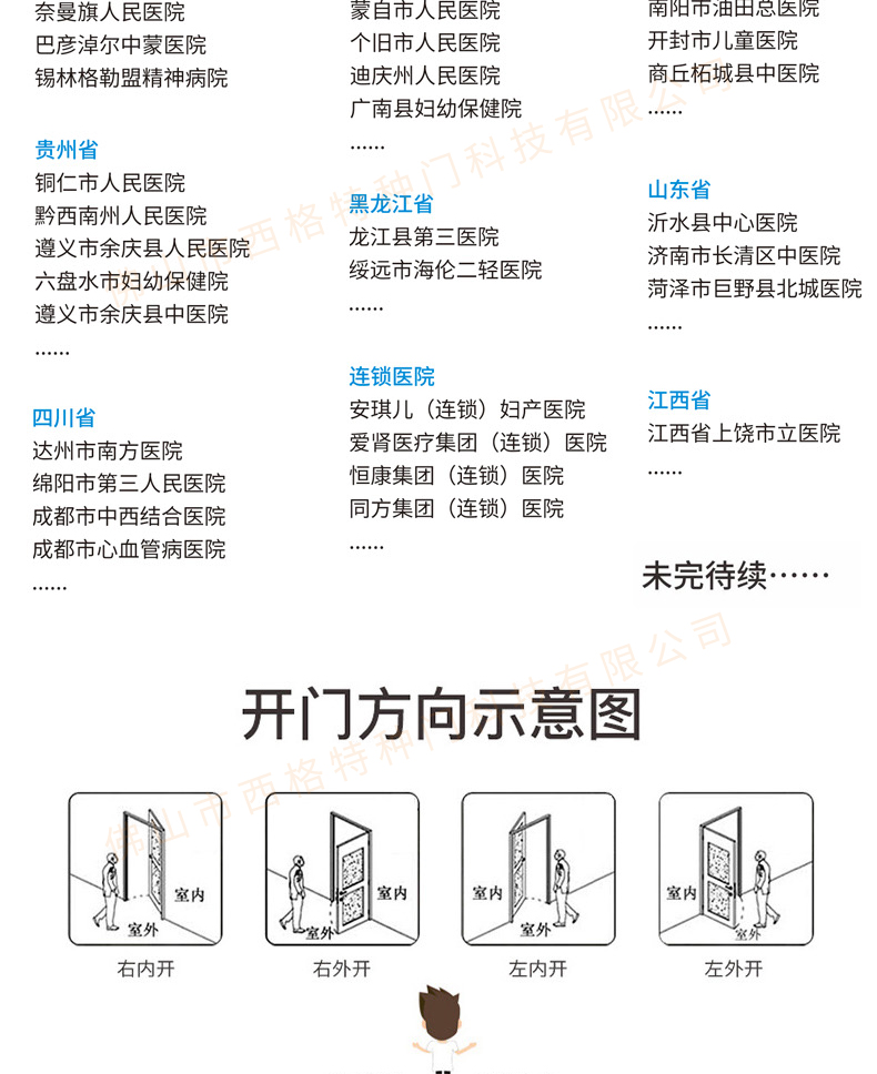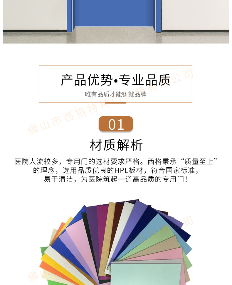 產品簡介:chnsige西格特種門,專業生產醫院門,醫院診室門,醫院辦公室門,醫院衛生間門,木質醫院門,鋼質醫院門,多鐘款式、顏色,尺寸可定制。